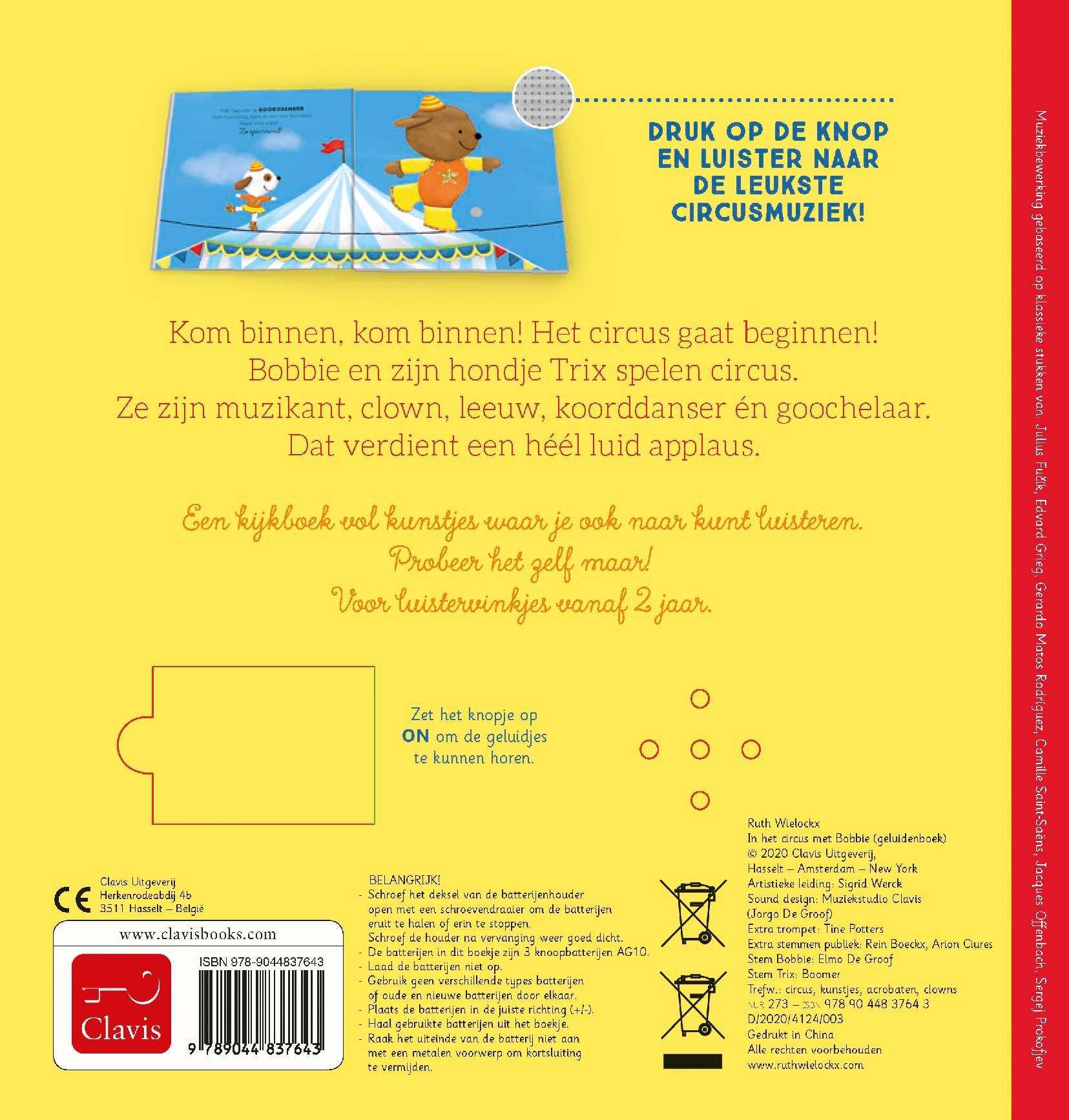 Kom binnen, kom binnen! Het circus gaat beginnen! Bobbie en zijn hondje Trix spelen circus. Ze zijn muzikant, clown, leeuw, koorddanser én goochelaar. Dat verdient een héél luid applaus. Een kijkboek vol kunstjes waar je ook naar kunt luisteren. Probeer het zelf maar! Voor luistervinkjes vanaf 2 jaar.