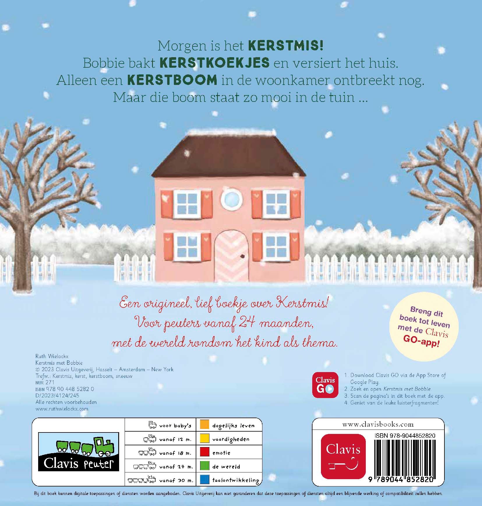 Morgen is het Kerstmis! Bobbie bakt kerstkoekjes en versiert het huis. Alleen een kerstboom in de woonkamer ontbreekt nog. Maar die boom staat zo mooi in de tuin... Een origineel lief boekje over Kerstmis! Voor peuters vanaf 24 maanden, met de wereld rondom het kind als thema.