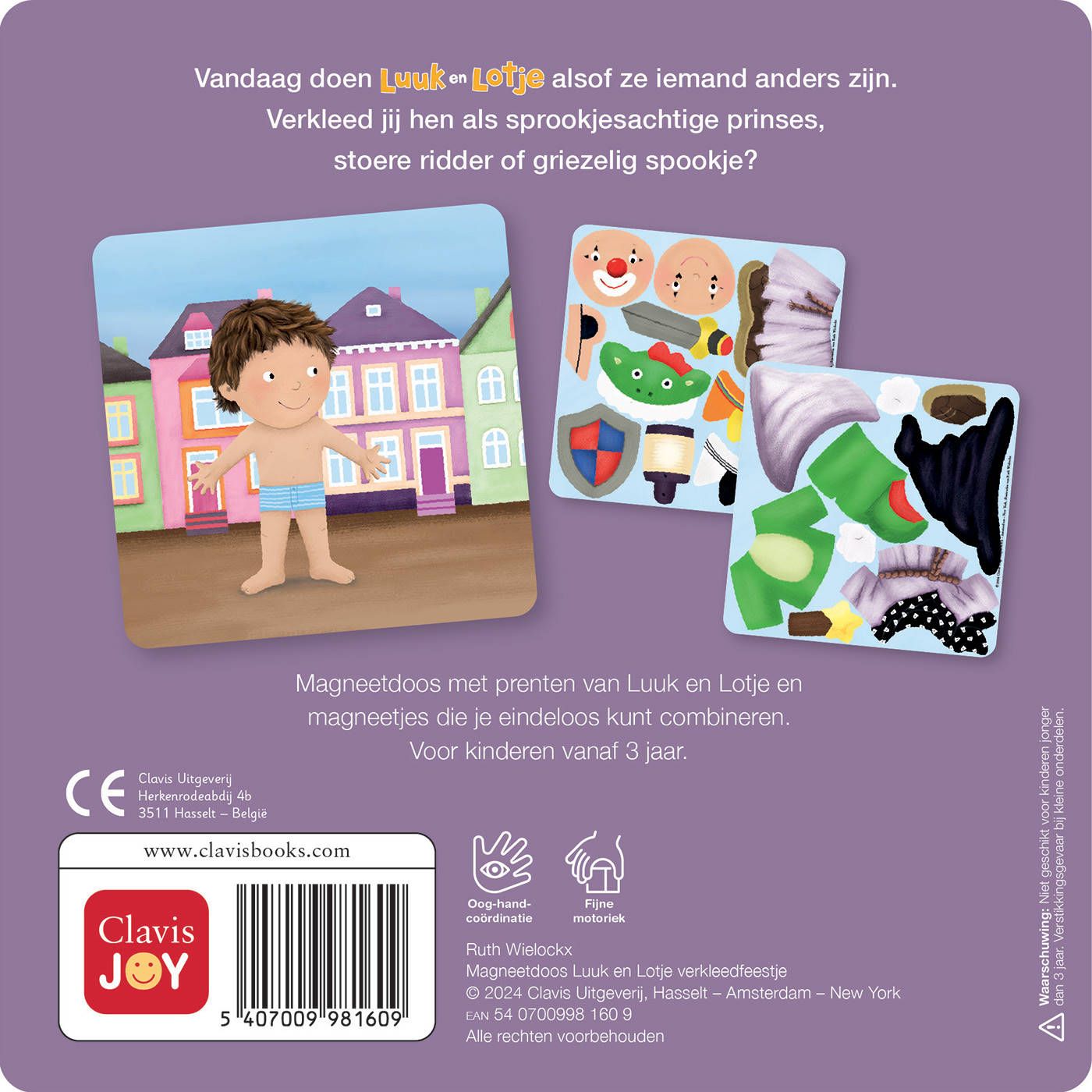 Vandaag doen Luuk en Lotje alsof ze iemand anders zijn. Verkleed jij hen als sprookjesachtige prinses, stoere ridder of griezelig spookje? Magneetdoos met prenten van Luuk en Lotje en magneetjes die je eindeloos kunt combineren. Voor kinderen vanaf 3 jaar.